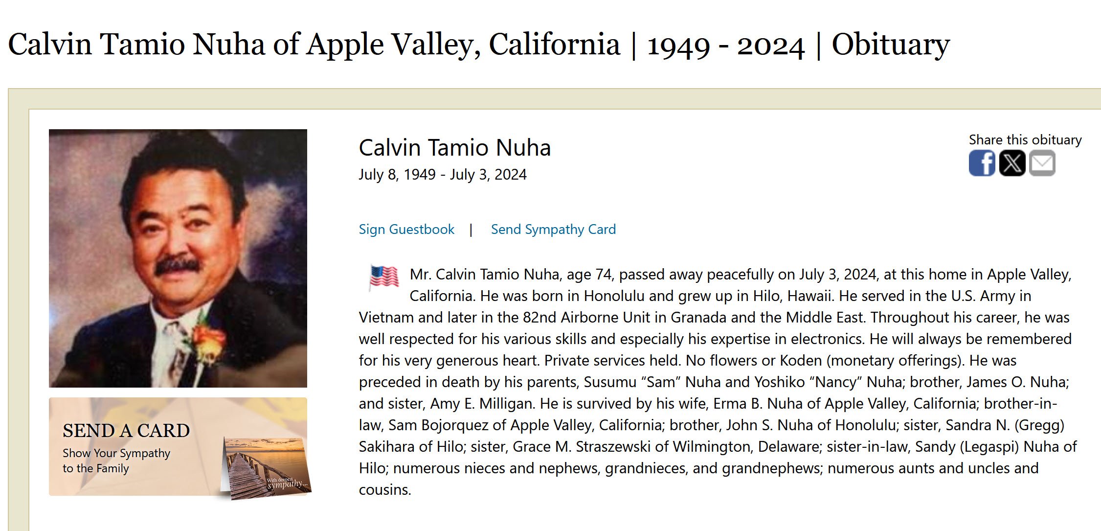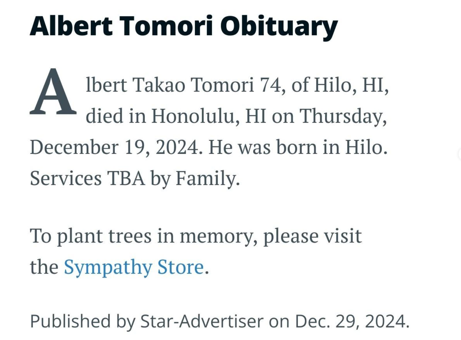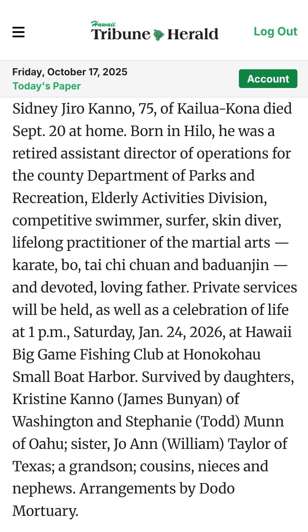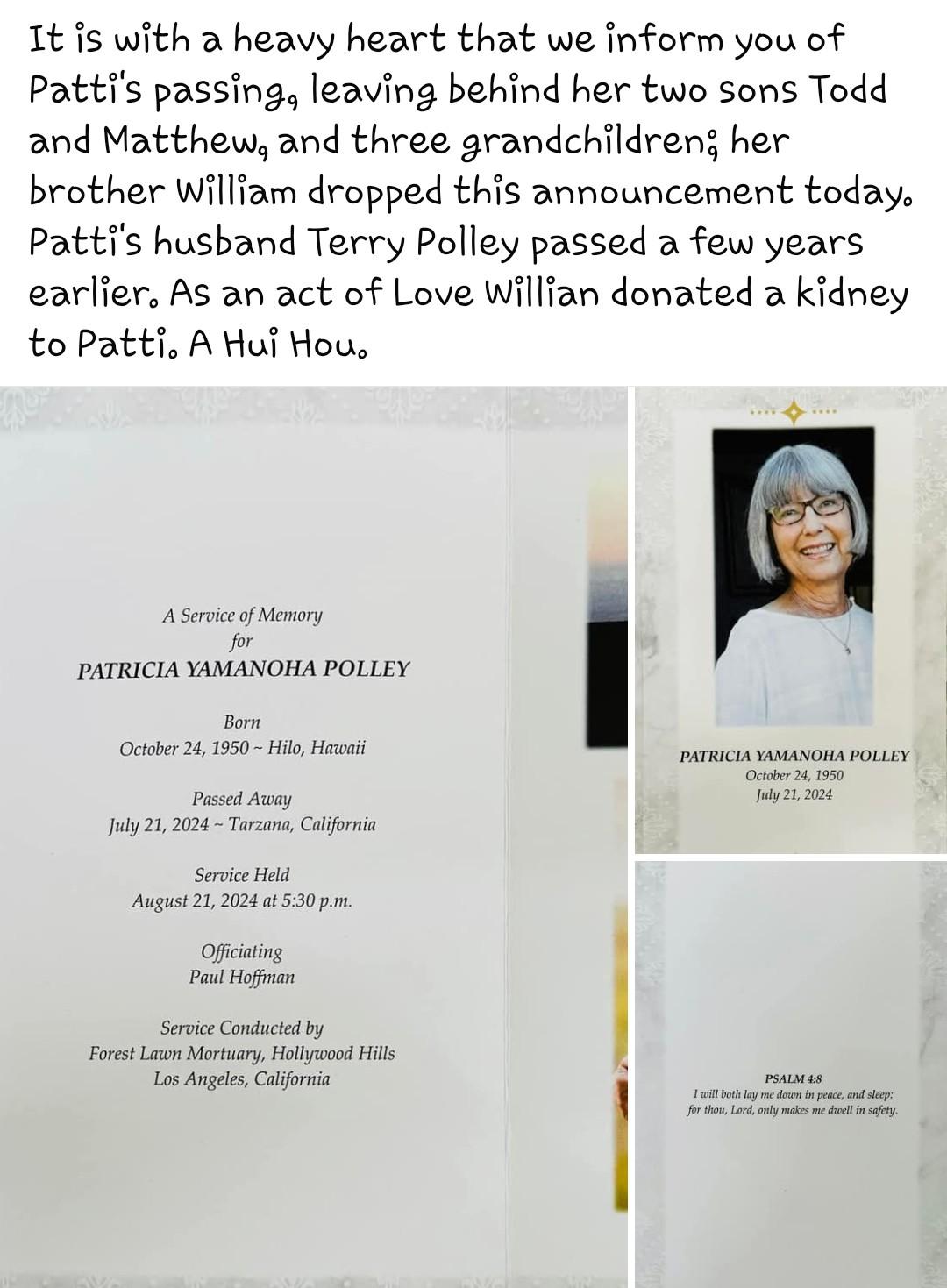 passed away on August 29, 2022. Gratitude to Susan Miyaji for the