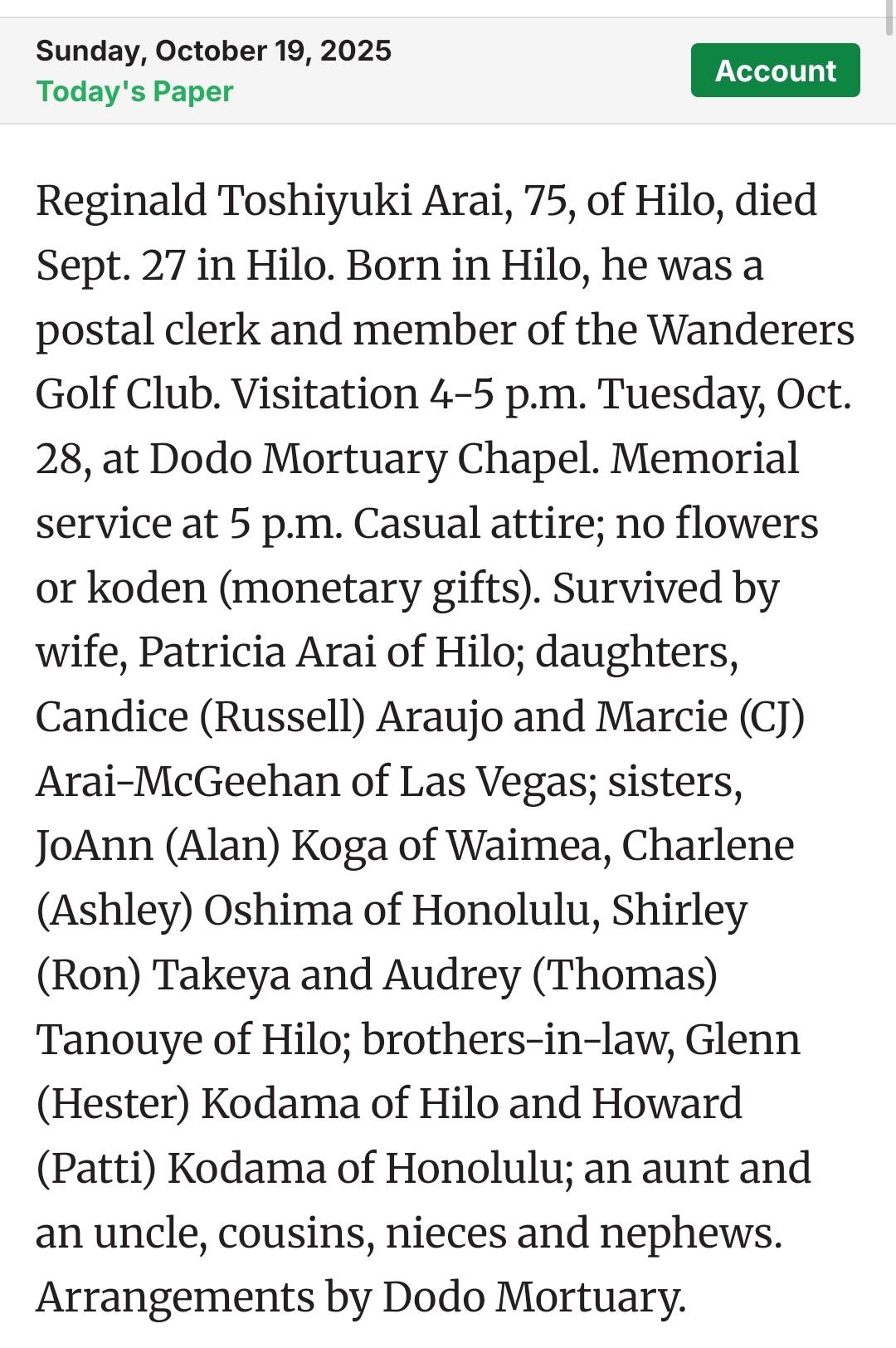 (10/21/2025) More sad news: Reginald Arai passed away on September 27, 2025. Sidney Kanno passed away on September 20, 2025. Click on the links to view obituaries. Thanks to Susan Miyaji for the informing me. (10/10/2025)